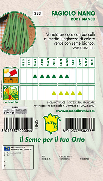 FAGIOLO NANO VERDE Bobis a grano bianco